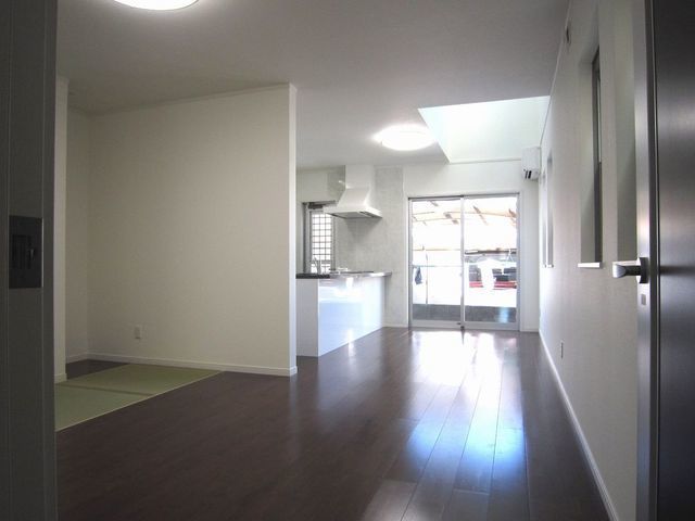 敷地間口:5.8m・奥行:23m、3方向で隣地が迫る敷地条件の為、採光計画にポイントを置き、2階屋根のトップライトからの採光を1階リビングに採り入れることでLDKの明るさを確保しました。