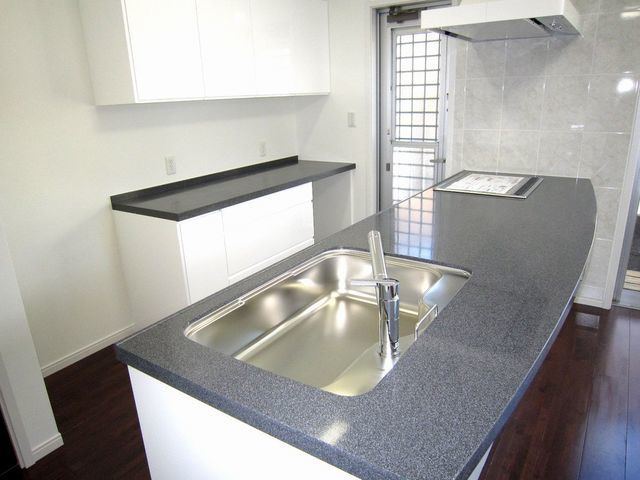 徹底したこだわりにトビラを加工し突起物や金物は付けないシンプルなキッチンに仕立てました。