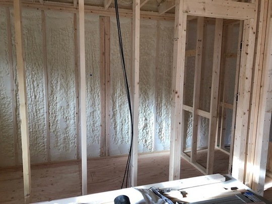 ▼ 下の写真は、発泡断熱材の施工状況です。