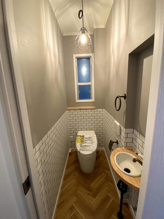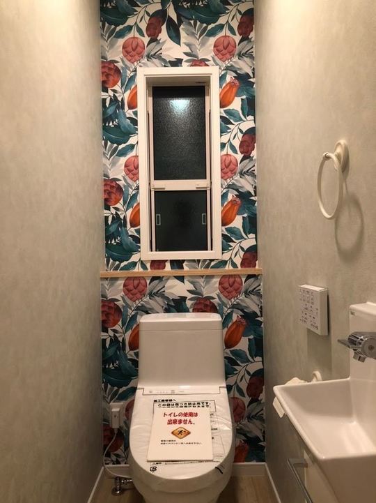 2Fトイレの壁紙は大胆な柄に!素敵です☆